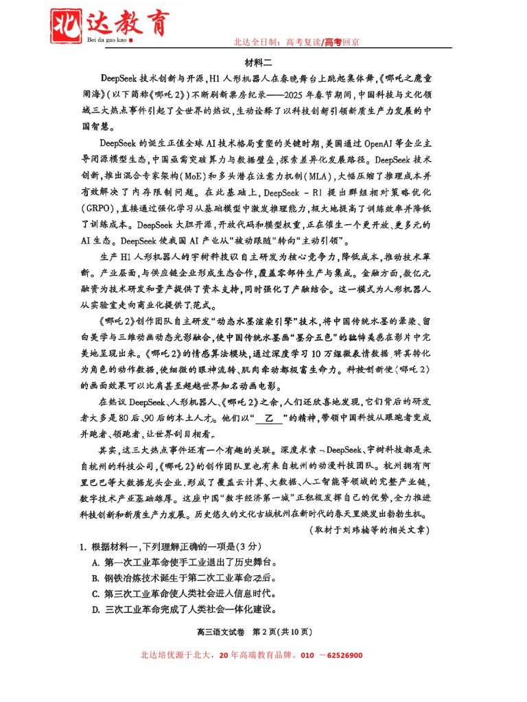 北京2025高三一模正在陆续进行中,为方便大家对答案、下载练习等小编给大家搜集了北京朝阳区2025年高三一模语文试题及答案,需要的小伙伴赶紧下载练习起来吧: 北京北达全日制学校,中…
