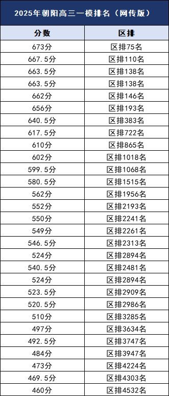 (网传版)2025北京朝阳区高三一模排名表来了~,以下是北达教研组为大家整理的内容详情,一起来看: