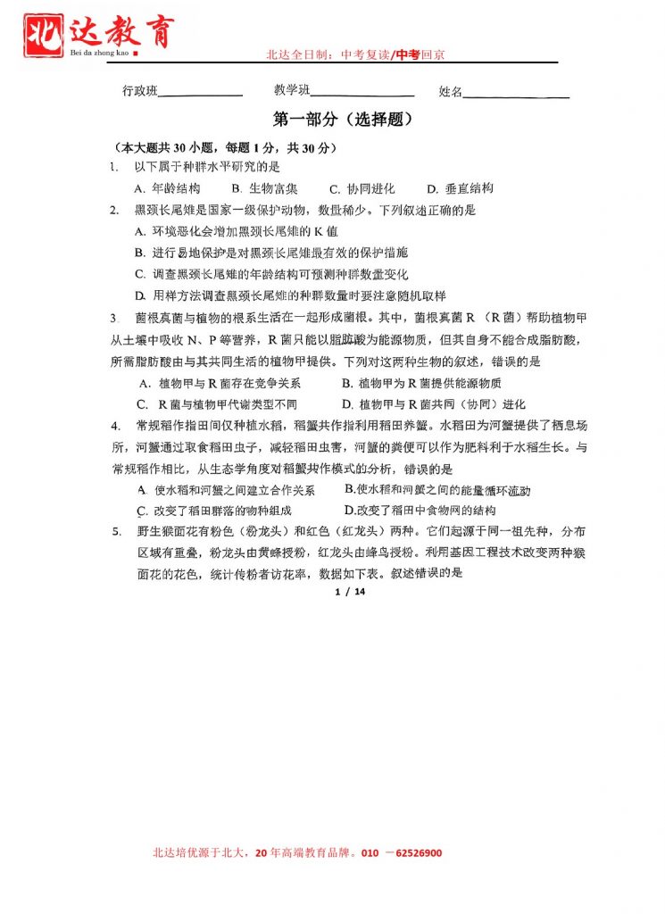 为方便大家对答案、下载练习等小编给大家搜集了2025北京东直门中学高二年级3月月考生物试卷,需要的小伙伴赶紧下载练习起来吧: 北京北达全日制学校,中高考复读,外地回京中高考 电话咨…