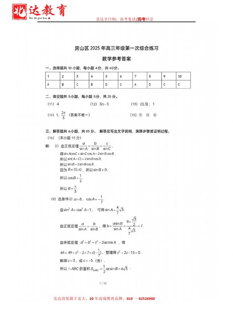 北京2025高三一模正在陆续进行中,为方便大家对答案、下载练习等小编给大家搜集了2025北京房山区高三一模数学试题及答案,需要的小伙伴赶紧下载练习起来吧: 北京北达全日制学校,中高…