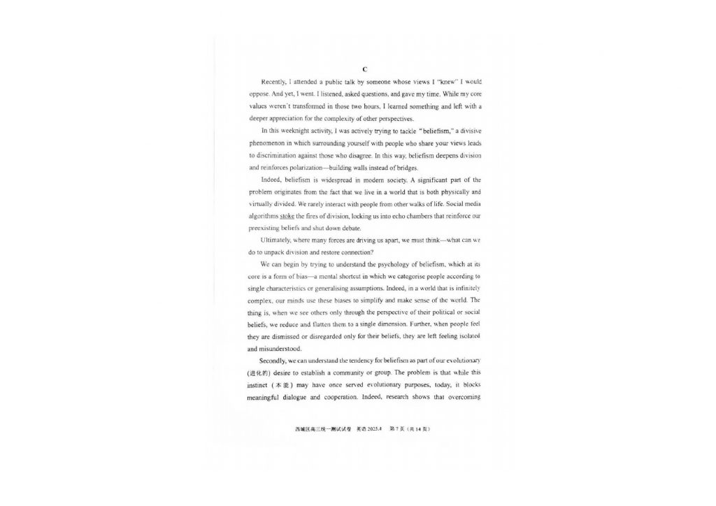 北京2025高三一模正在陆续进行中,为方便大家对答案、下载练习等小编给大家搜集了西城区2025高三一模英语试卷及答案,需要的小伙伴赶紧下载练习起来吧:
