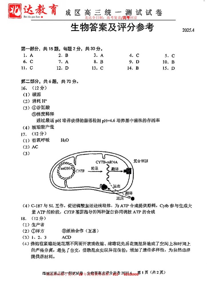 北京2025高三一模正在陆续进行中,为方便大家对答案、下载练习等小编给大家搜集了2025北京西城区高三一模生物试题及答案,需要的小伙伴赶紧下载练习起来吧: