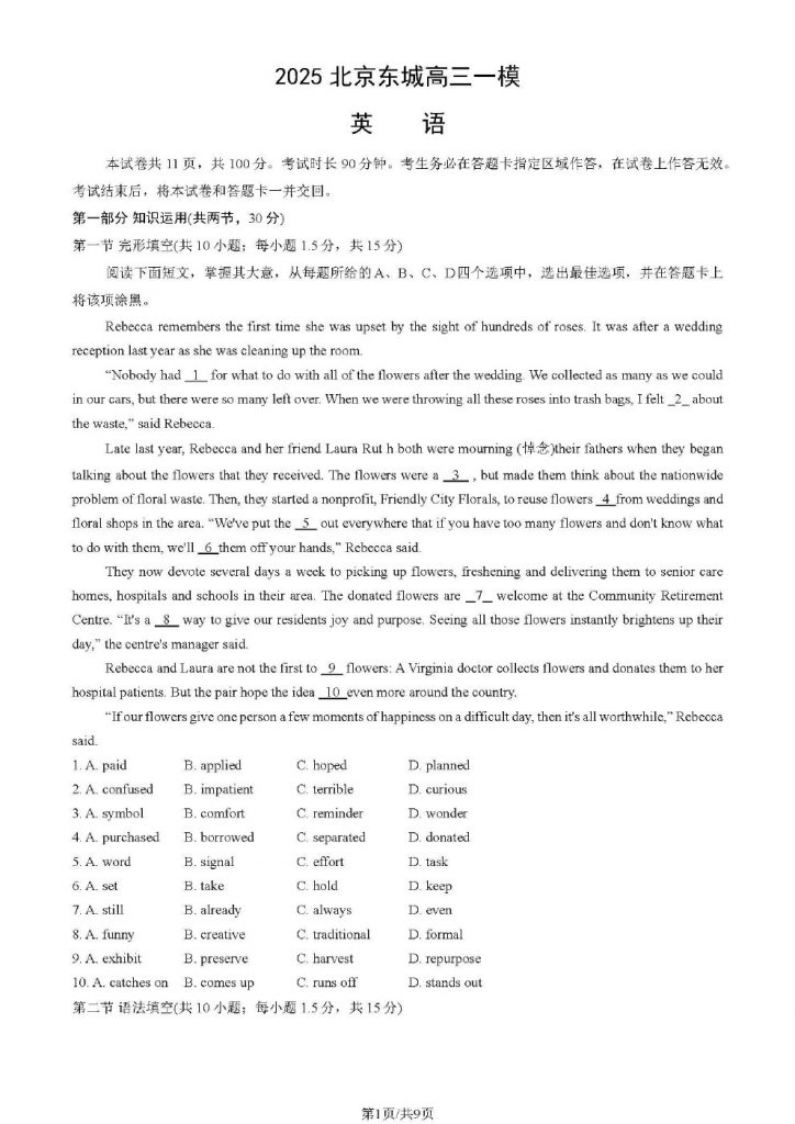 北京2025高三一模正在陆续进行中,为方便大家对答案、下载练习等小编给大家搜集了北京东城2025高三一模英语试题含答案,需要的小伙伴赶紧下载练习起来吧: