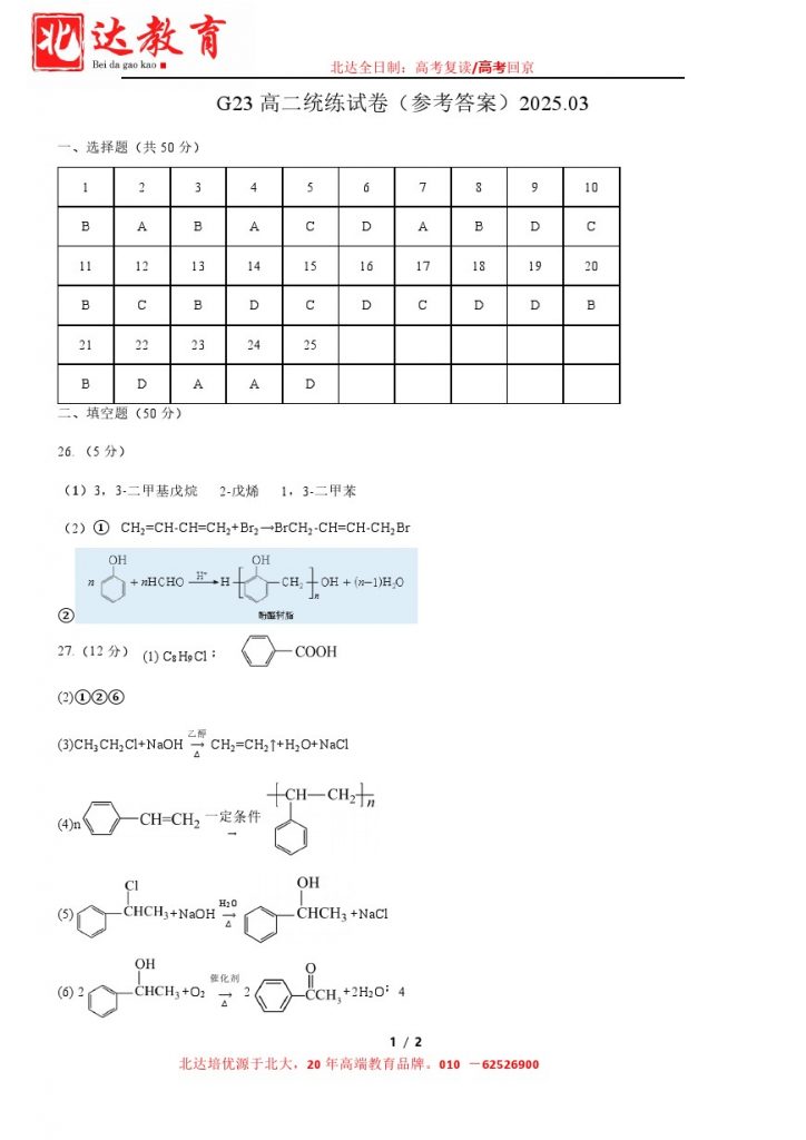 为方便大家对答案、下载练习等小编给大家搜集了清华附中2025高二统练化学试题及答案,需要的小伙伴赶紧下载练习起来吧: 北京北达全日制学校,中高考复读,外地回京中高考 电话咨询:40…