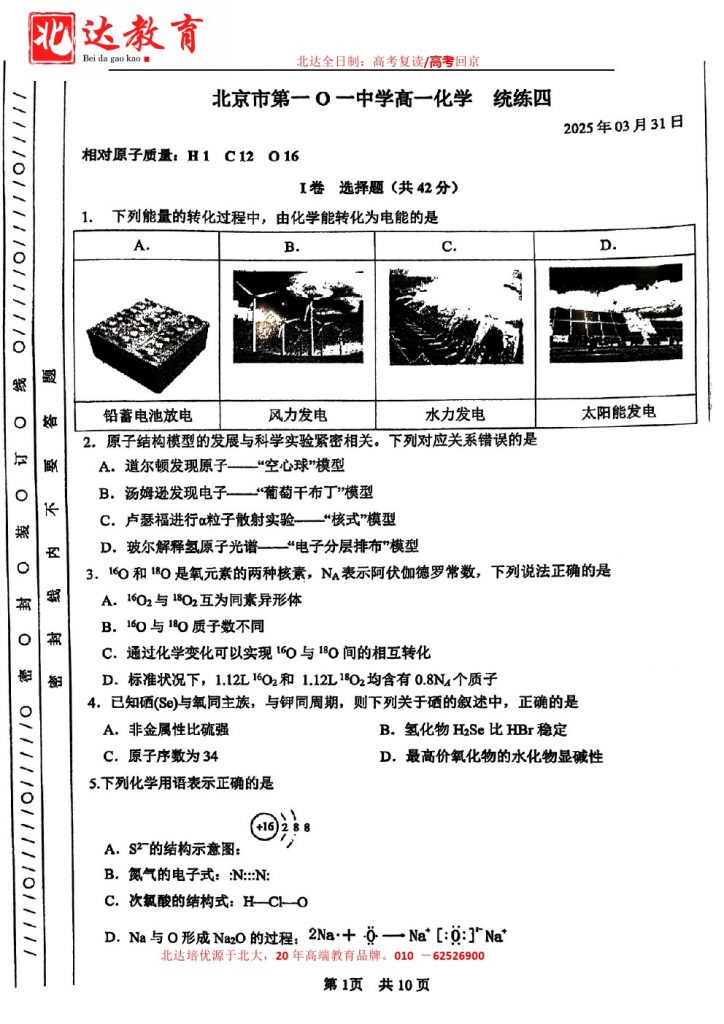 为方便大家对答案、下载练习等小编给大家搜集了2025北京一零一中高一(下)统练四化学试题及答案,需要的小伙伴赶紧下载练习起来吧: 北京北达全日制学校,中高考复读,外地回京中高考 电…