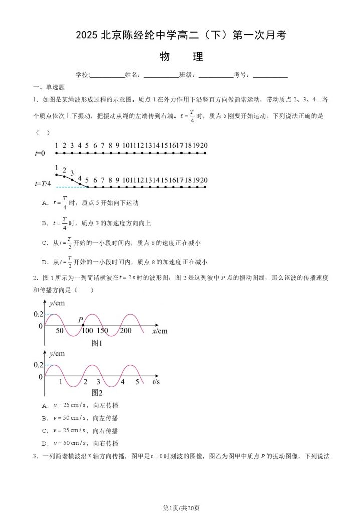 为方便大家对答案、下载练习等小编给大家搜集了2025北京陈经纶中学高二(下)第一次月考物理试题及答案,需要的小伙伴赶紧下载练习起来吧:
