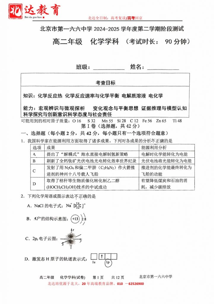 为方便大家对答案、下载练习等小编给大家搜集了北京一六六中2025高二3月月考化学试题及答案,需要的小伙伴赶紧下载练习起来吧: 北京北达全日制学校,中高考复读,外地回京中高考 电话咨…