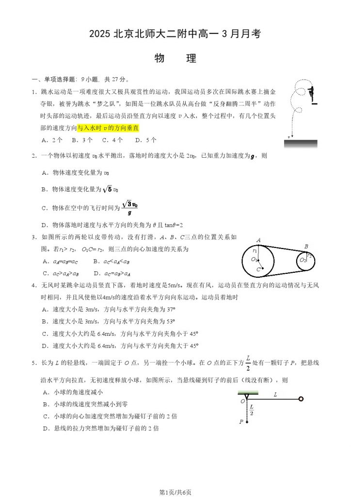 为方便大家对答案、下载练习等小编给大家搜集了2025北师大二附中高一3月考物理试题及答案,需要的小伙伴赶紧下载练习起来吧: