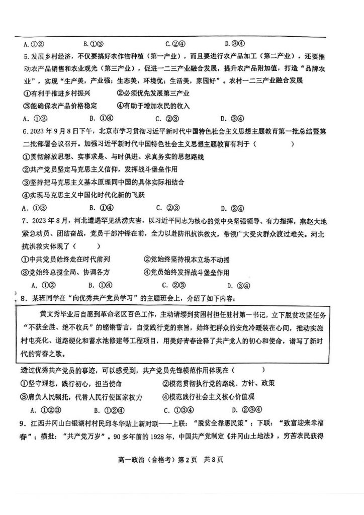 2025北京各区高一期中考已陆续开始,北达教研组整理了2025北京五十五中高一(下)期中政治(合格考)试题,分享给大家。