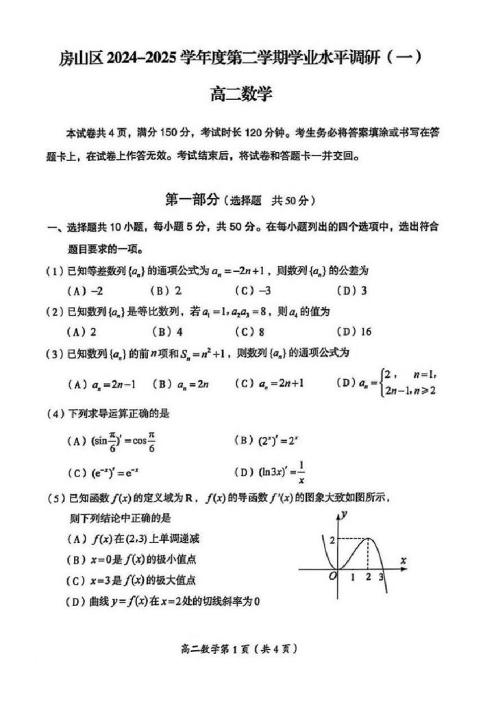 2025北京各区高二期中考已陆续开始,北达教研组整理了2025北京房山区高二(下)期中数学试题,分享给大家。