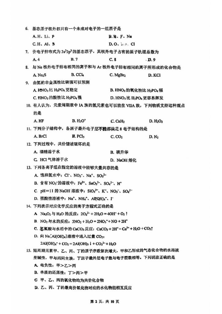 2025北京各区高一期中考已陆续开始,北达教研组整理了清华附中2025高一(下)期中化学试题,分享给大家。