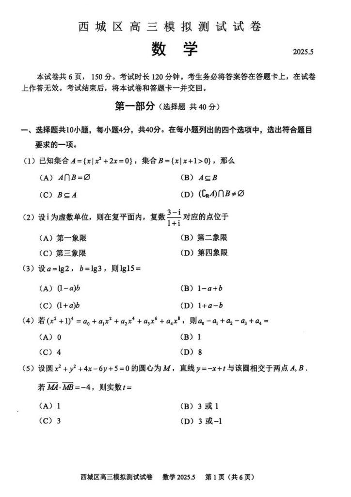 北京2025高三二模正在陆续进行中,为方便大家对答案、下载练习等,小编给大家搜集了北京西城区2025高三二模数学试题及答案,需要的小伙伴赶紧下载练习起来吧: