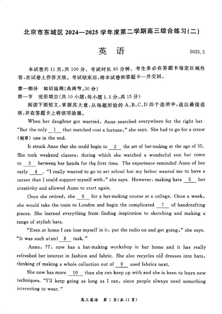 北京2025高三二模正在陆续进行中,为方便大家对答案、下载练习等,小编给大家搜集了2025北京东城区高三二模英语试题及答案,需要的小伙伴赶紧下载练习起来吧: