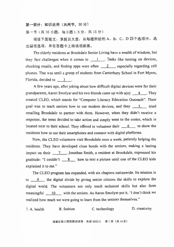 北京2025高三二模正在陆续进行中,为方便大家对答案、下载练习等,小编给大家搜集了2025北京西城区高三二模英语试题及答案,需要的小伙伴赶紧下载练习起来吧: