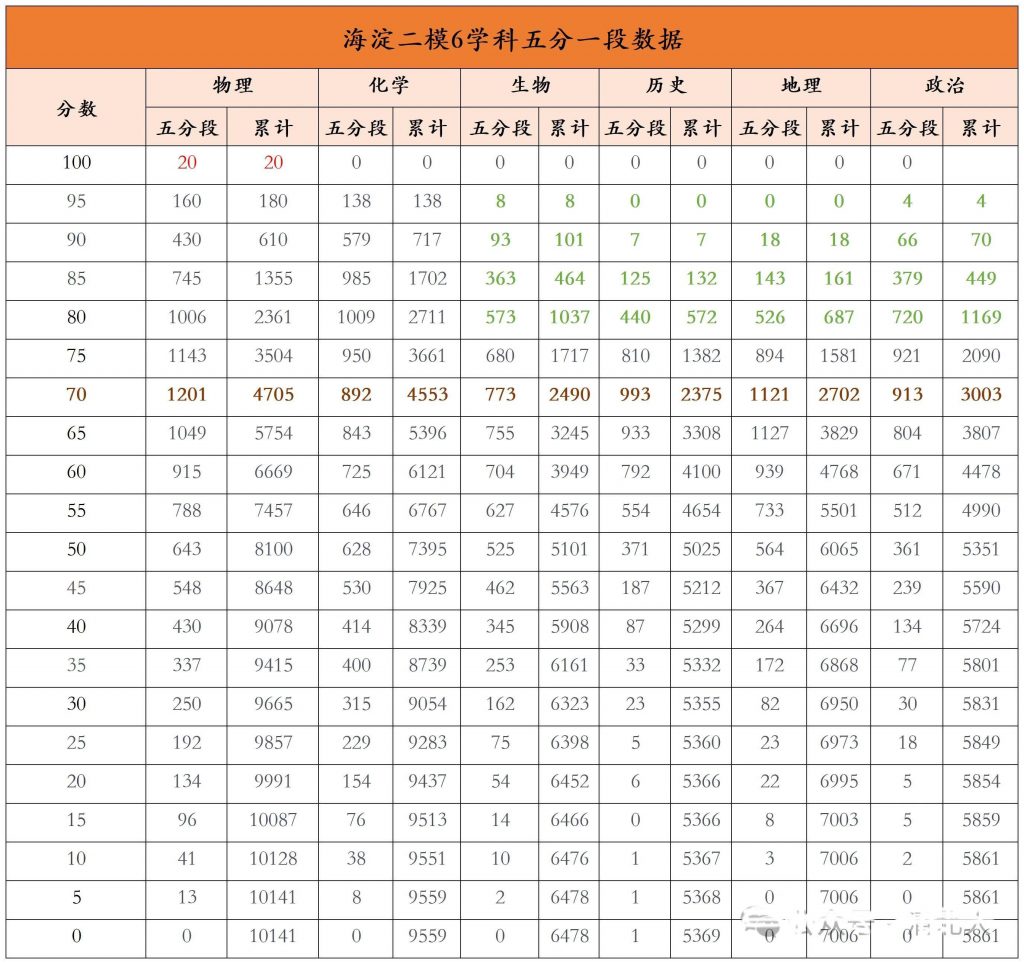 2025海淀二模六科五分一段数据