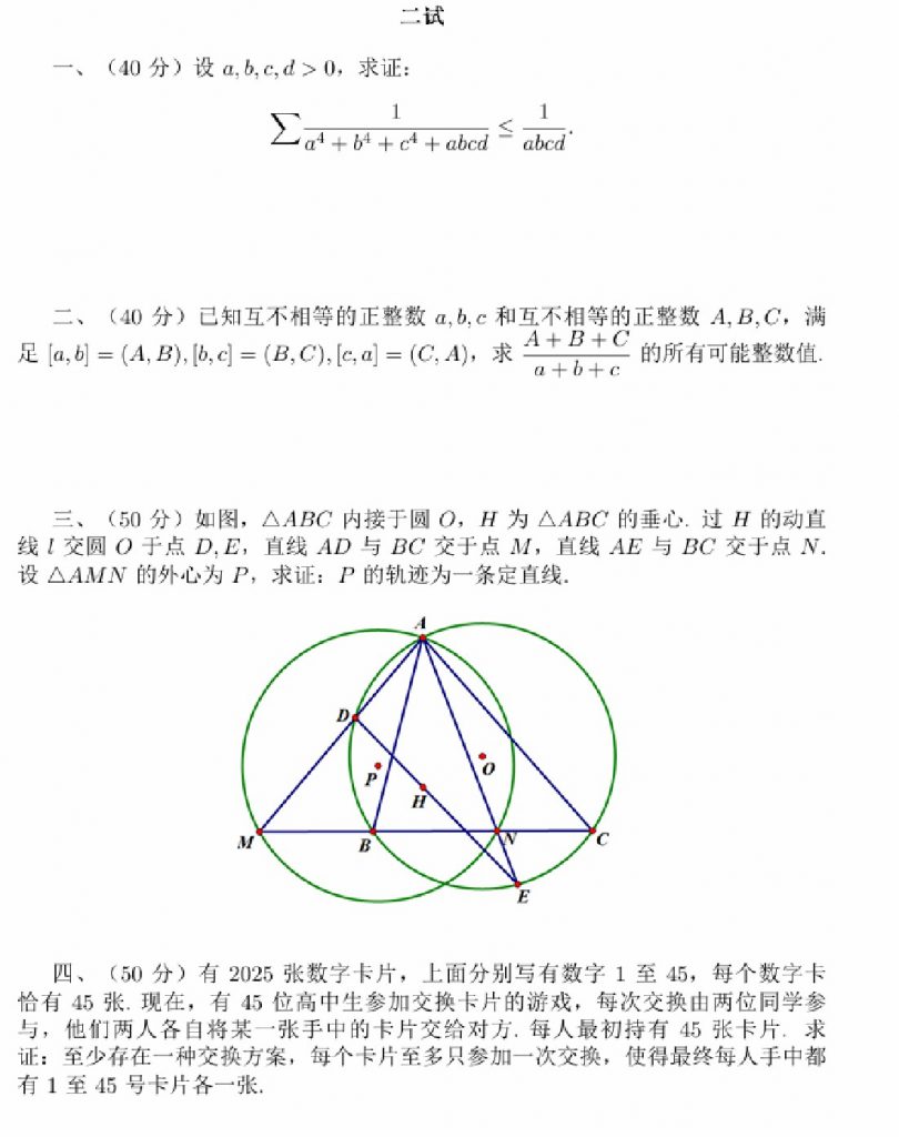 北达高考复读学校整理了2025北京赛区数学竞赛二试试题,供考生参考。