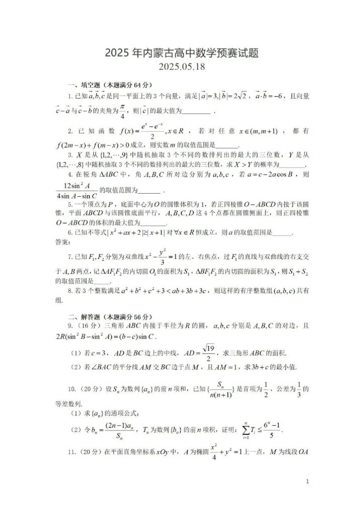 北达高考复读学校整理了2025内蒙古赛区数学竞赛初赛试题,供考生参考。
