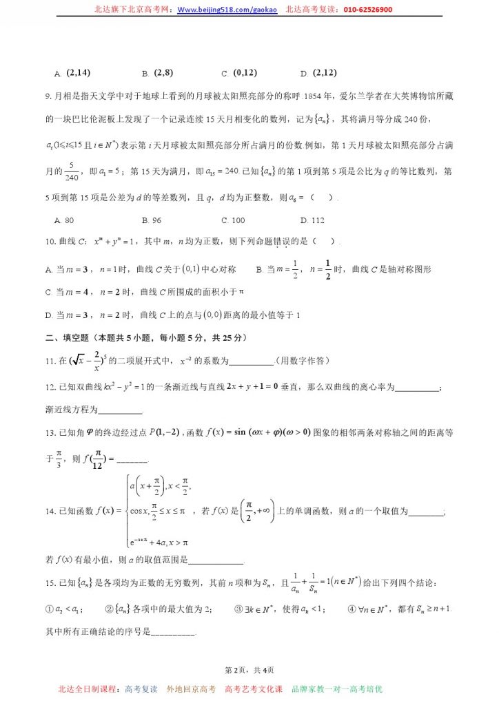 北京部分中学近期陆续进行了高三三模考试,北达高考复读学校整理了2025北京二中高三三模数学试题及答案,供考生下载练习。