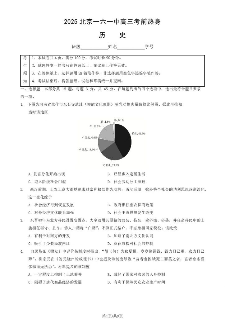 北京部分中学近期陆续进行了高三三模考试,北达高考复读学校整理了2025北京一六一中高三考前热身历史试题及答案,供考生下载练习。