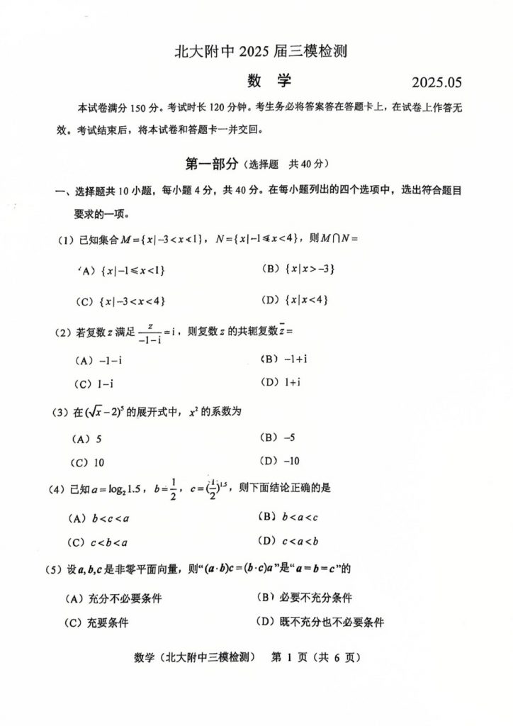 北京部分中学近期陆续进行了高三三模考试,北达高考复读学校整理了北京北大附中2025高三三模数学试题及答案,供考生下载练习。