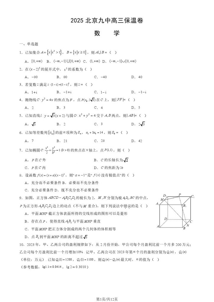 北京部分中学近期陆续进行了高三三模考试,北达高考复读学校整理了北京九中2025高三保温卷数学试题及答案,供考生下载练习。