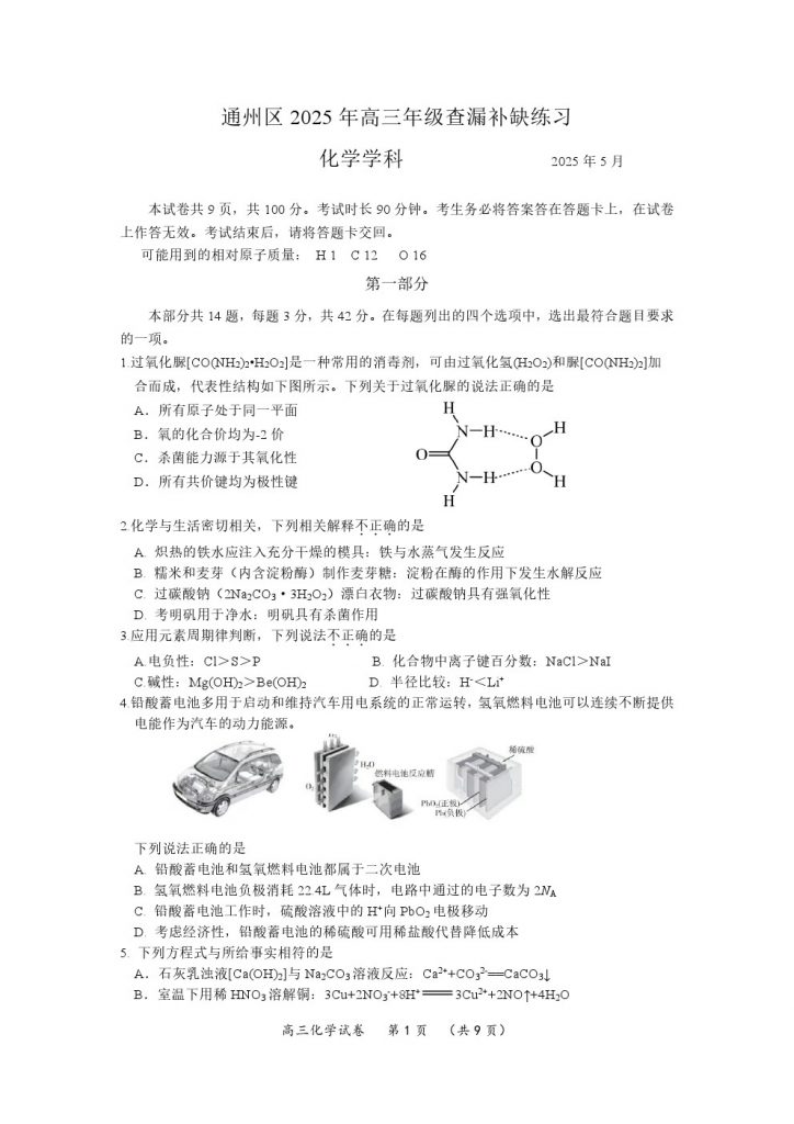 北京部分中学近期陆续进行了高三三模考试,北达高考复读学校整理了2025北京通州高三三模化学试题及答案,供考生下载练习。