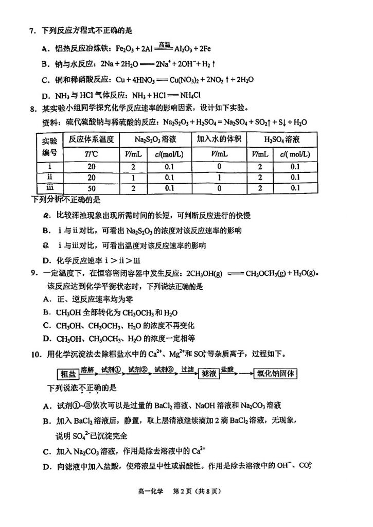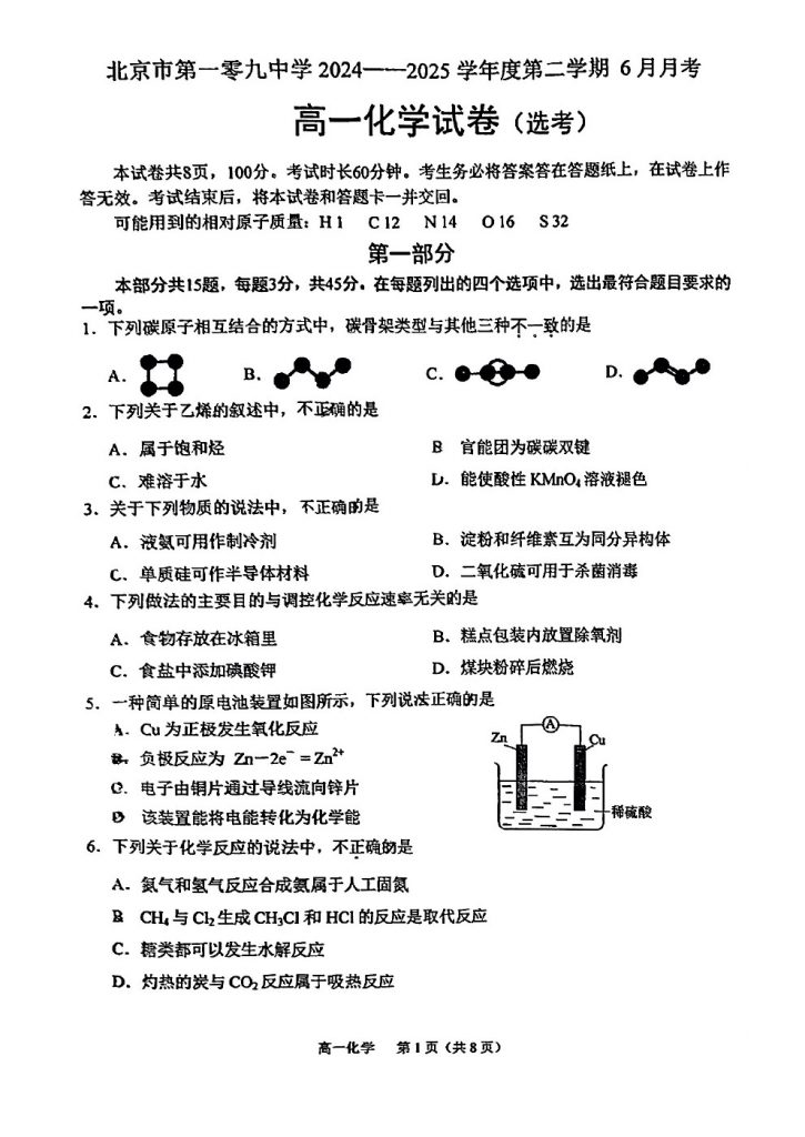 2025年北京各中学高一6月月考已结束,小编整理了北京一零九中2025年高一6月月考化学试题,分享给大家。