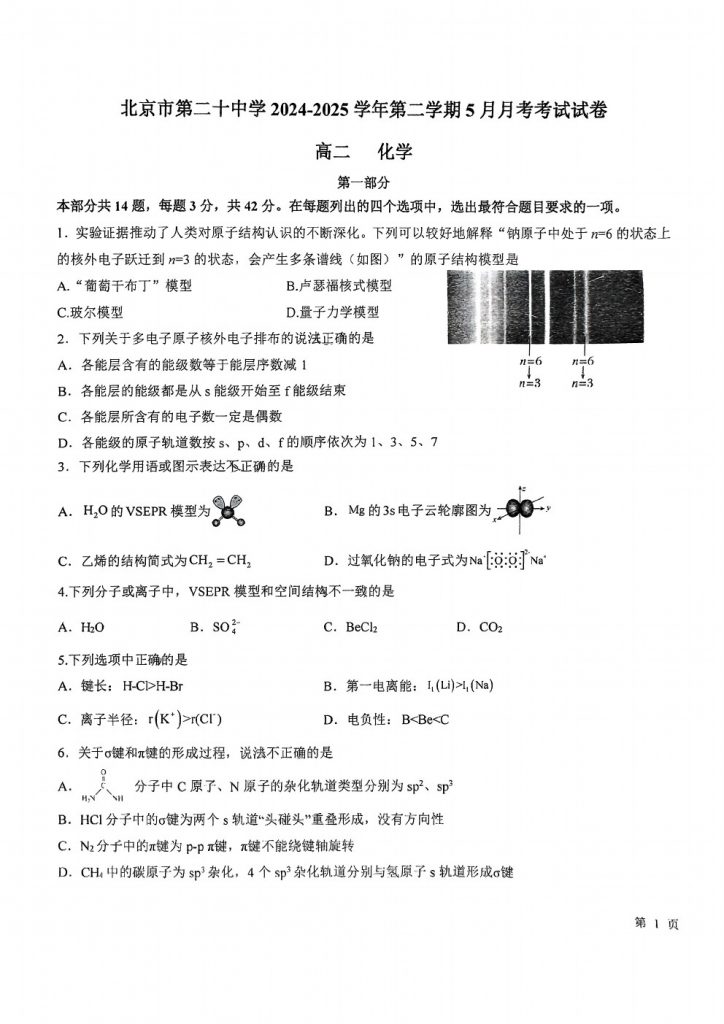 2025年北京各中学高二6月月考已陆续进行中,小编整理了北京二十中2025年高二6月月考化学试题及答案,分享给大家。