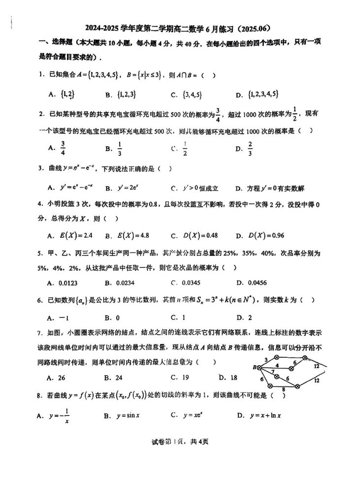 2025年北京各中学高二6月月考已陆续进行中,小编整理了北京理工大附中2025年高二6月月考数学试题,分享给大家。