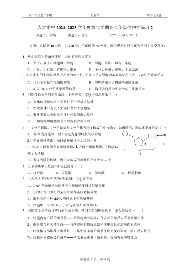 2025年北京各中学高二6月月考已陆续进行中,小编整理了2025北京人大附中高二6月月考生物试题,分享给大家。 2025北达高考复读全日制,应届生全日制,外地回京全日制采取择优录取…