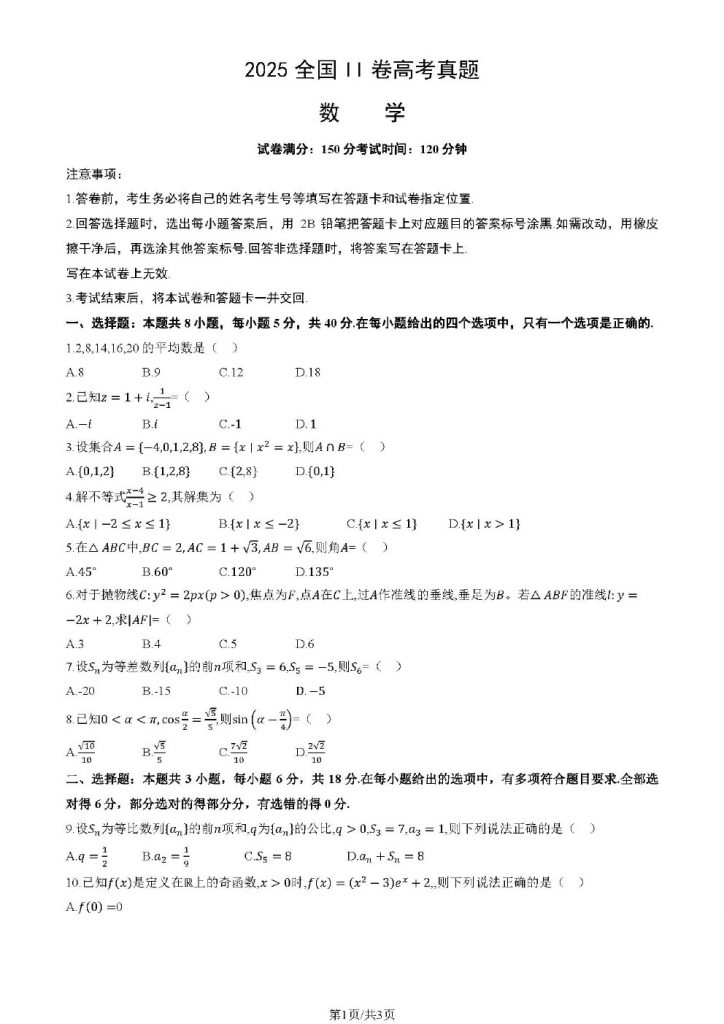 2025年全国各省市高考考试已结束,北达教研组整理了2025全国高考2卷数学试题及答案,详情如下: