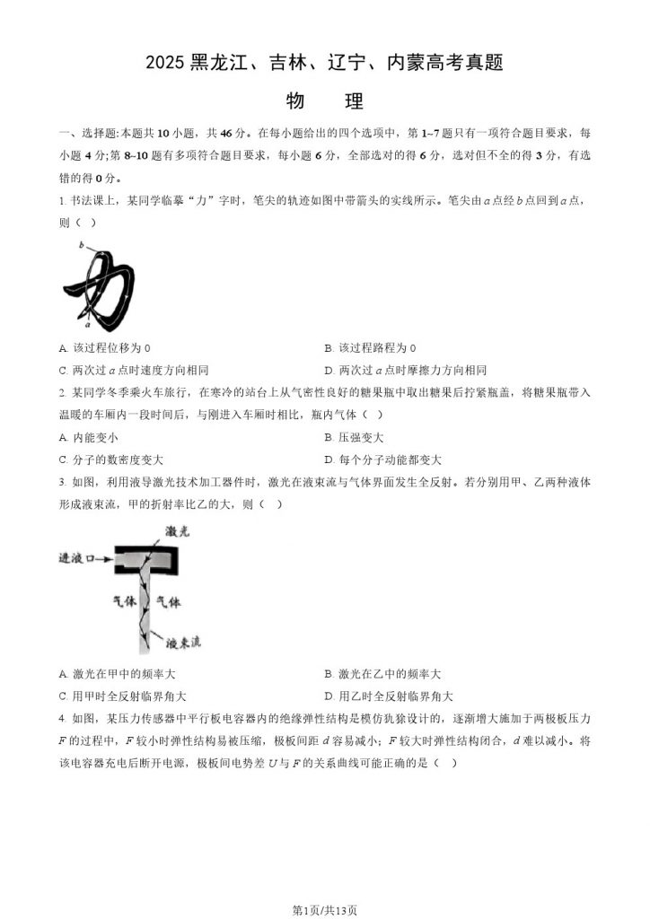 2025年全国各省市高考考试已结束,北达教研组整理了2025(黑吉辽内)高考物理真题及答案,详情如下:
