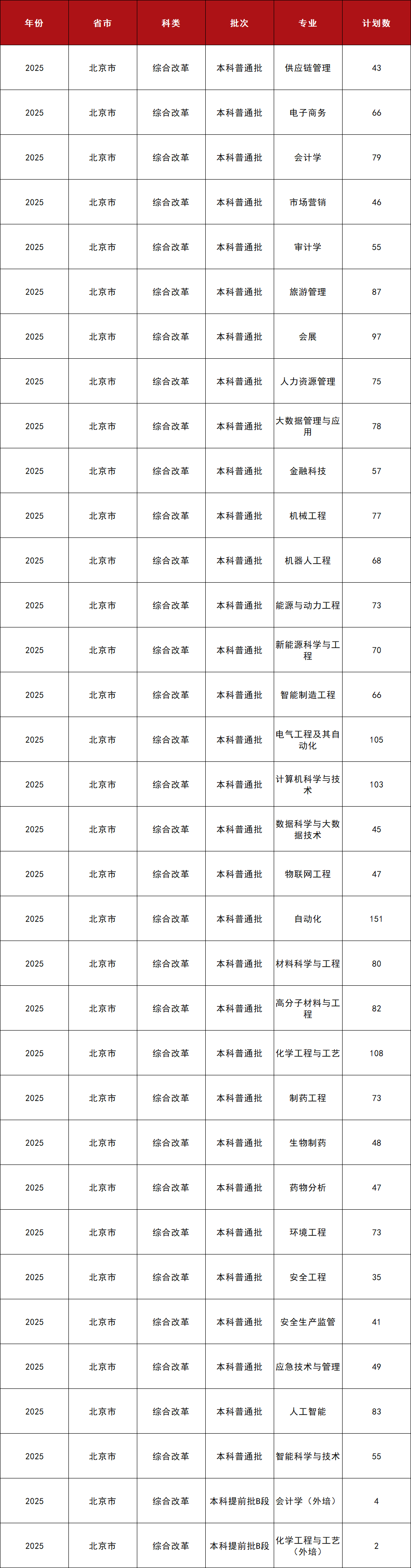 2025年全国各省市高考已结束,北达教研组整理了北京石油化工学院2025在京招生专业计划 ,分享给大家,具体如下: