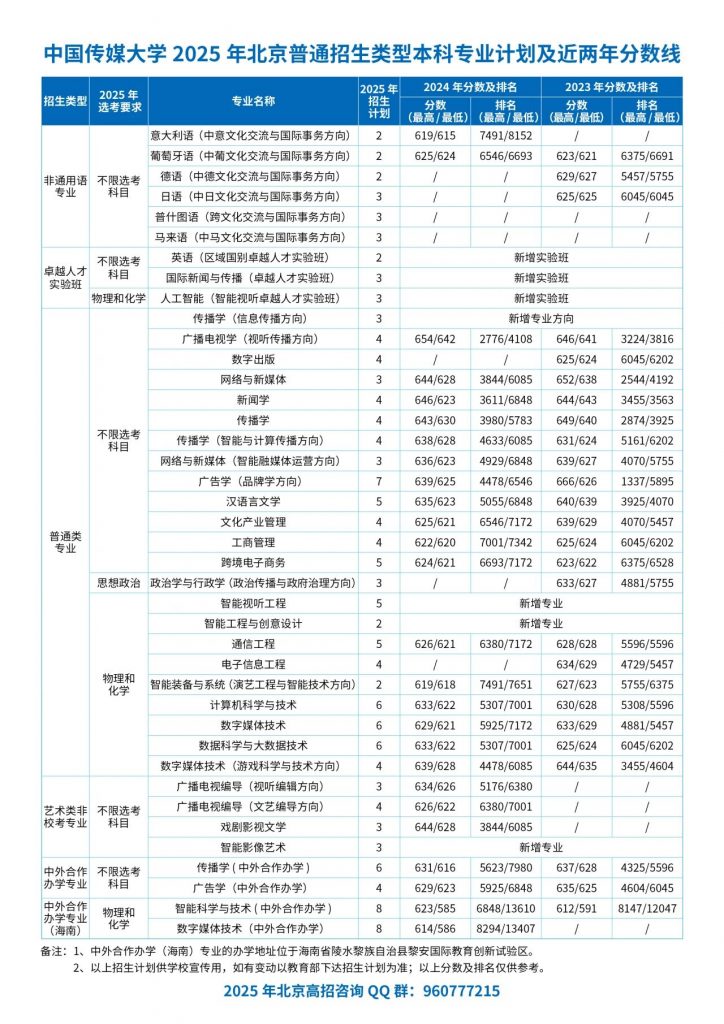 2025年全国各省市高考已结束,北达教研组整理了2025年中国传媒大学在京招生计划,分享给大家,具体如下: