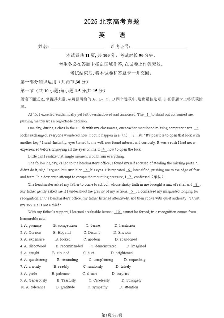 2025年全国各省市高考考试已结束,北达教研组整理了2025年北京高考英语真题,详情如下: