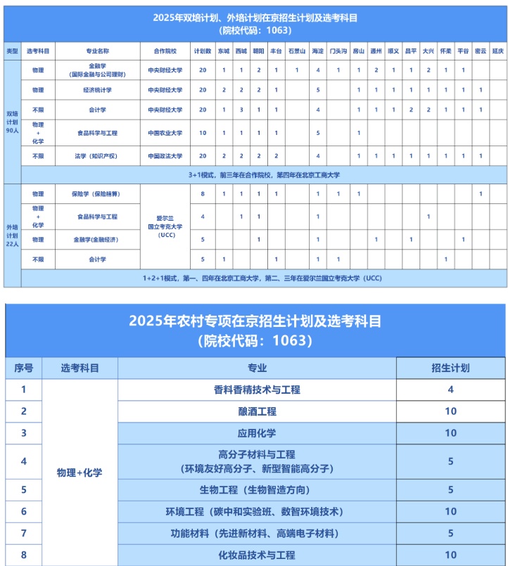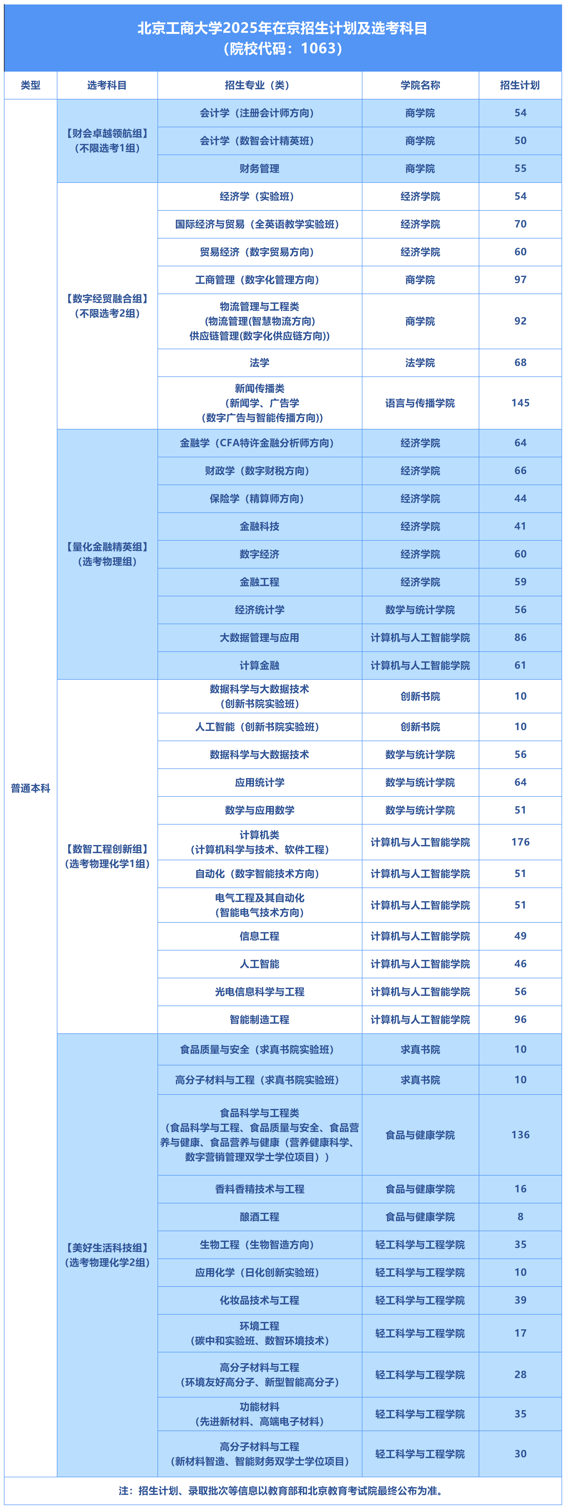 2025年全国各省市高考已结束,北达教研组整理了2025年北京工商大学在京招生计划,分享给大家,具体如下: