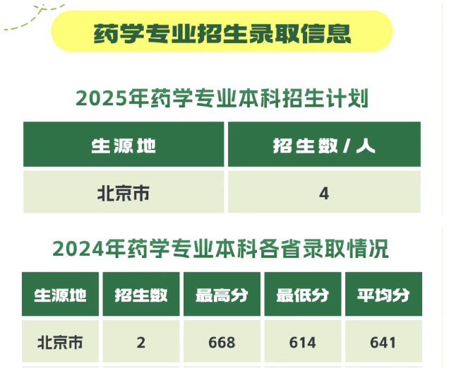 北京协和医学院药学本科2025年在京招生计划及往年录取分数