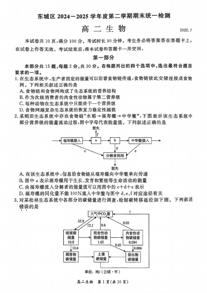 首页 高二资料 2025北京东城高二(下)期末生物试题
