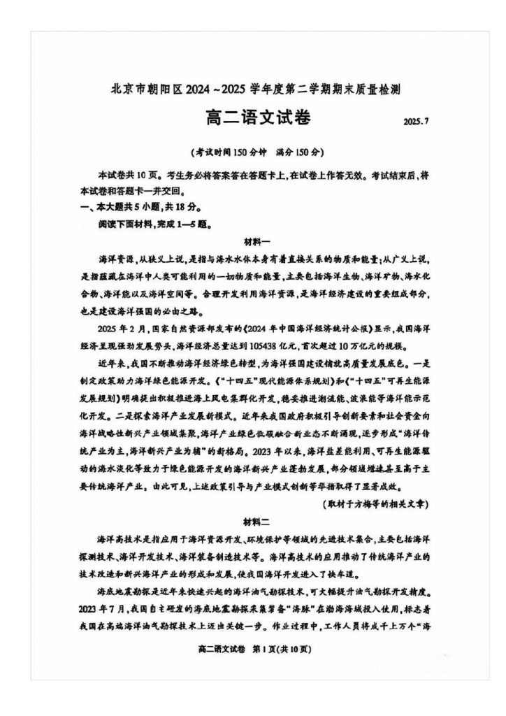 2025年北京各区高二(下)期末考已陆续开始进行,北达教研组整理了2025北京朝阳区高二(下)期末语文试题,分享给大家。 2025北达高考复读全日制,应届生全日制,外地回京全日制采…