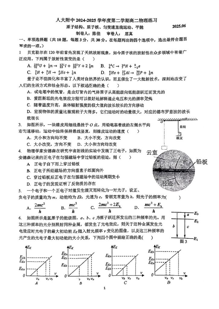 2025年北京各区高二(下)期末考已陆续开始进行,北达教研组整理了2025北京人大附中高二6月月考物理试题及答案,分享给大家。