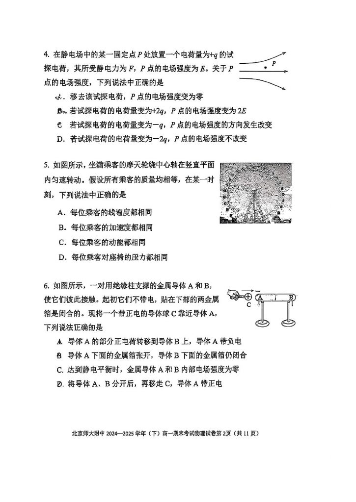 2025年北京各区高一(下)期末考已陆续开始进行,北达教研组整理了2025北京北师大附中高一(下)期末物理试题,分享给大家。