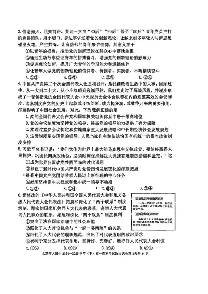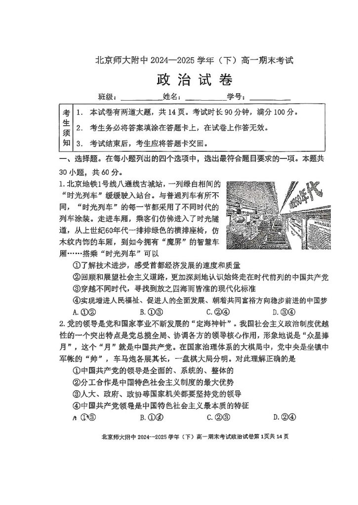 首页 高一资料 2025北京北师大附中高一(下)期末政治试题