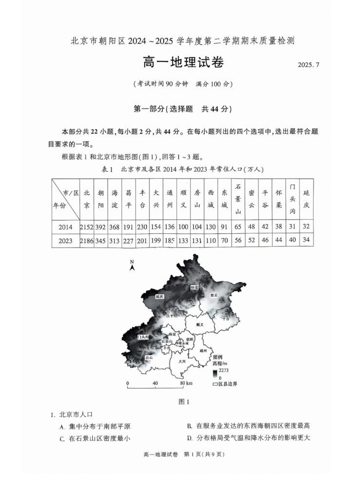 2025年北京各区高一(下)期末考已陆续开始进行,北达教研组整理了2025朝阳高一(下)期末地理试题及答案,分享给大家。 2025北达高考复读全日制,应届生全日制,外地回京全日制采…