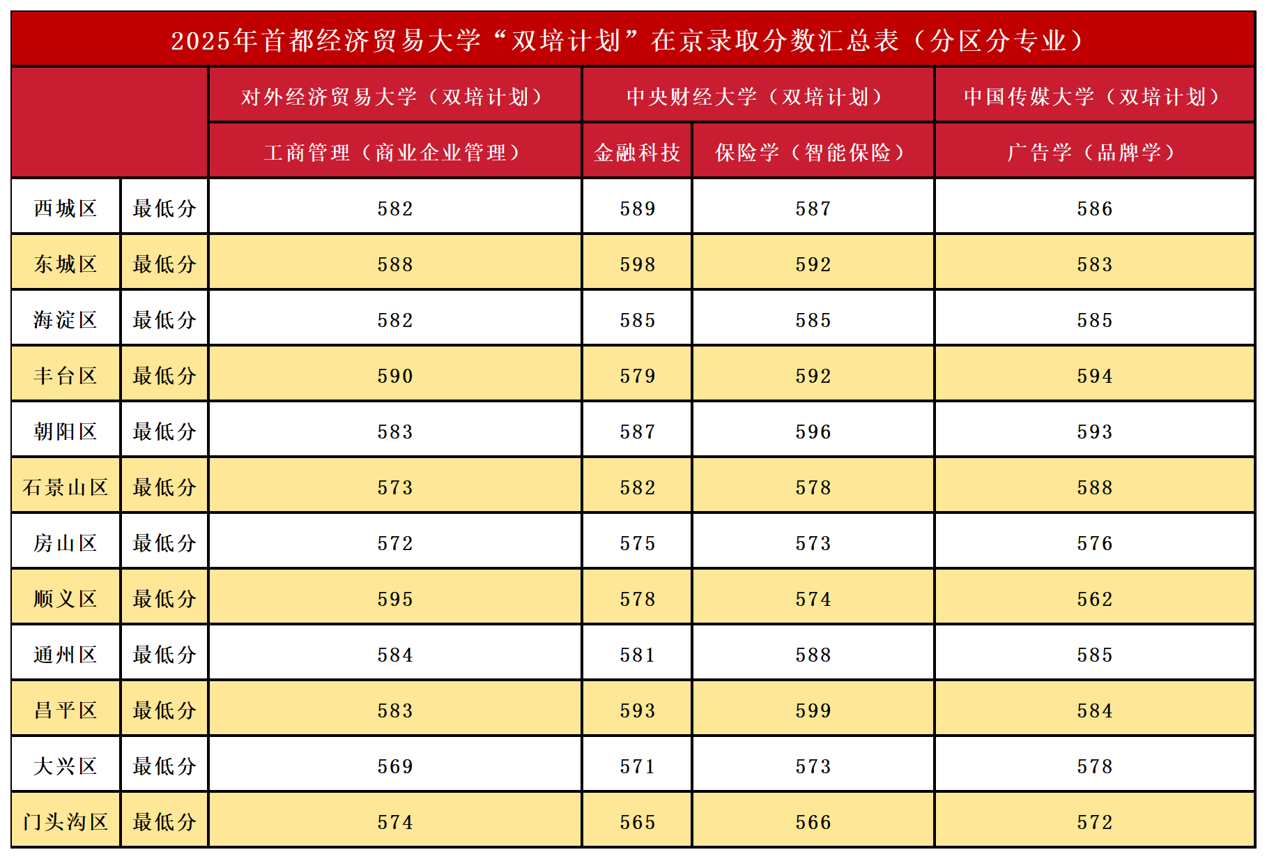 首都经济贸易大学2025年双培计划录取分数线