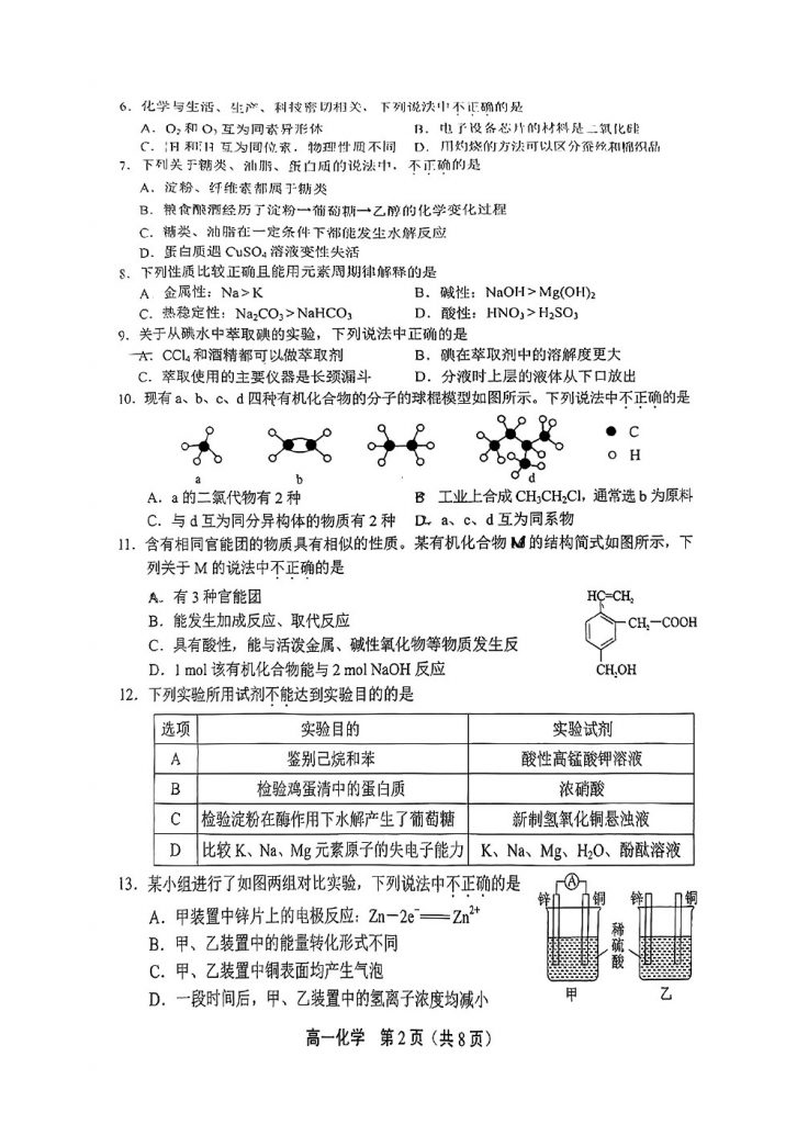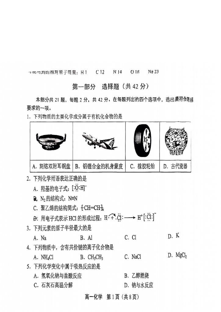 首页 高一资料 2025北京丰台高一(下)期末化学试题及答案