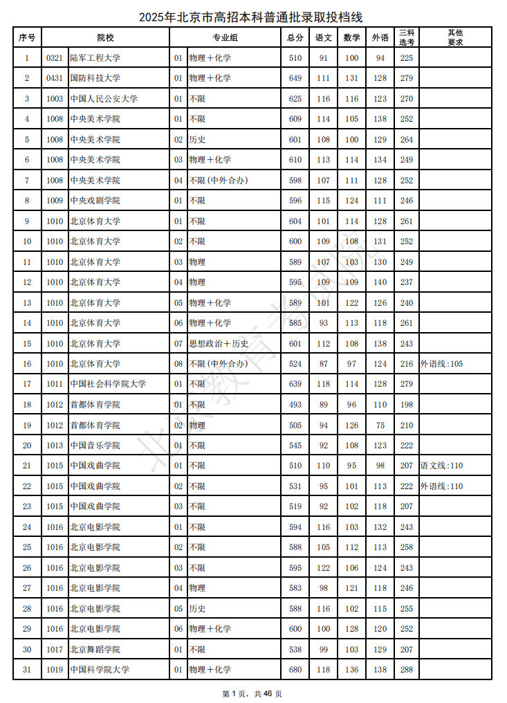 首页 录取分数线 2025北京高招本科普通批录取投档线出炉