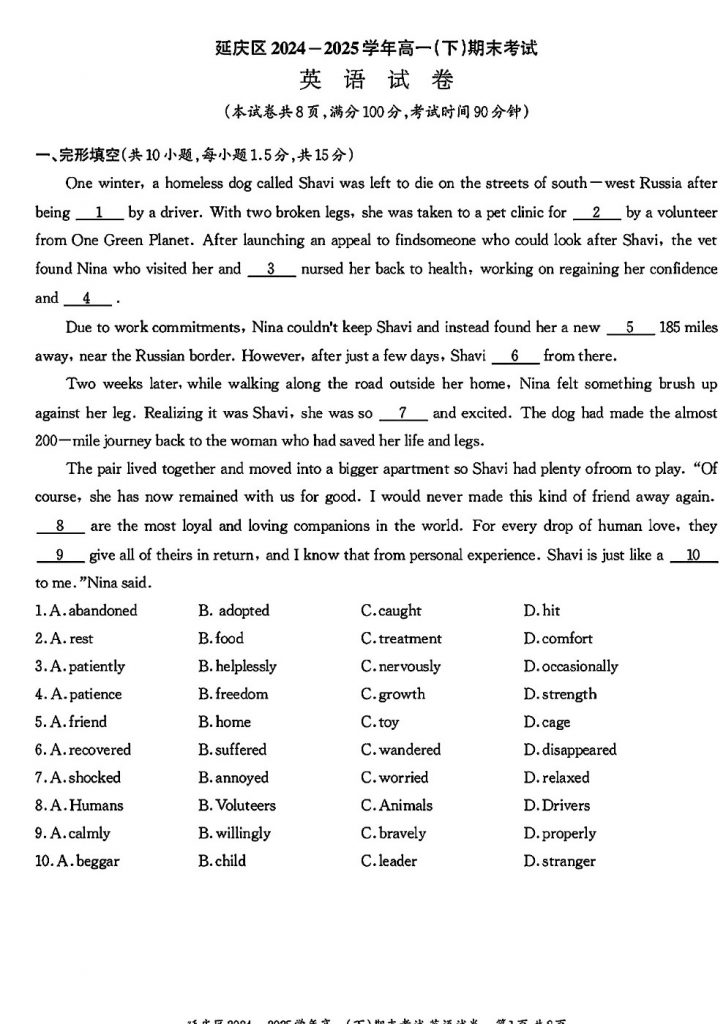 2025年北京各区高一(下)期末考已陆续开始进行,北达教研组整理了2025北京延庆高一(下)期末英语试题及答案,分享给大家。