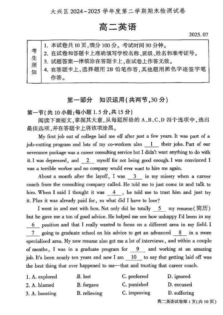 2025年北京各区高二(下)期末考已陆续开始进行,北达教研组整理了2025北京大兴高二(下)期末英语试题,分享给大家。 2025北达高考复读全日制,应届生全日制,外地回京全日制采取…