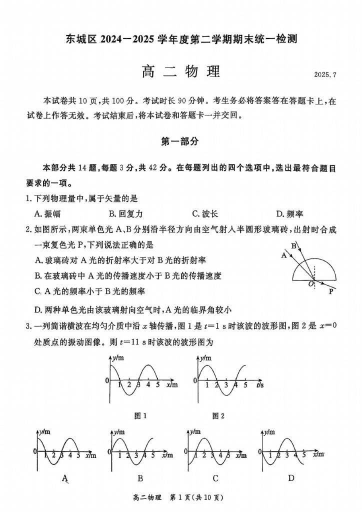 2025年北京各区高二(下)期末考已陆续开始进行,北达教研组整理了2025北京东城高二(下)期末物理试题,分享给大家。 2025北达高考复读全日制,应届生全日制,外地回京全日制采取…