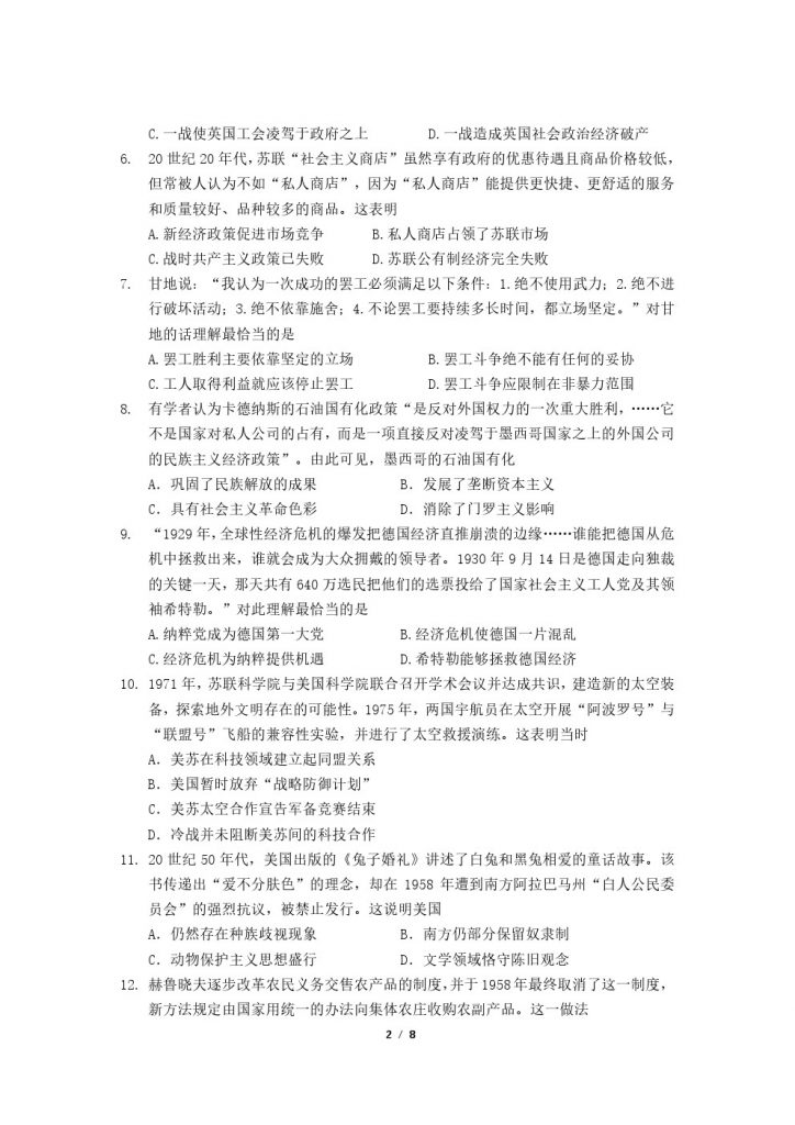 2025北京北大附中高一(下)期末历史试题及答案